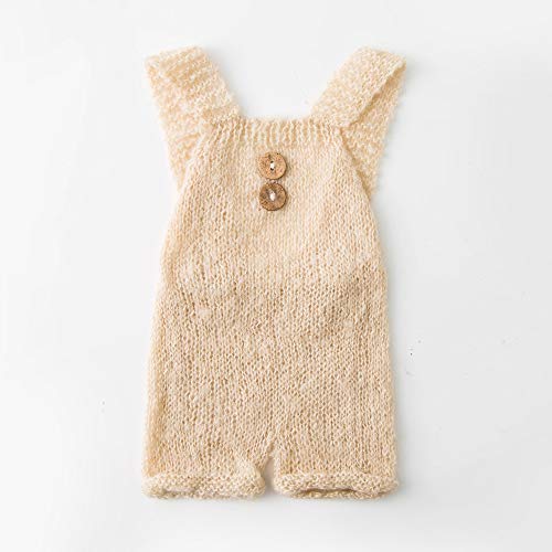 Vemonllas - Vemonllas Newborn Photography Props Boys Girls Outfits Crochet Knitted Mohair Romper Baby Photo Props Open Back Bodysuits, Beige, M