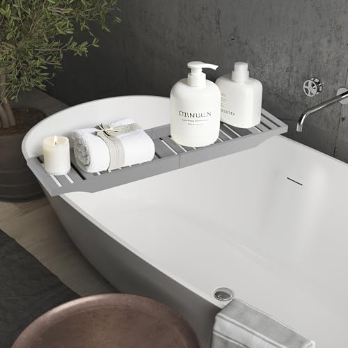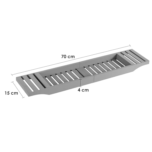 Vencier - Vencier Foldable Bamboo Bath Tub Rack – Adjustable Bathroom Shelf, Tidy Tray & Storage Caddy Organiser for Relaxing Spa Bath (Grey)