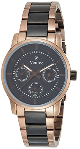 Venice - Venice F5016-IPC-IPB-B Two-Tone Stainless Steel Round Analog Watch for Women - Black and Gold