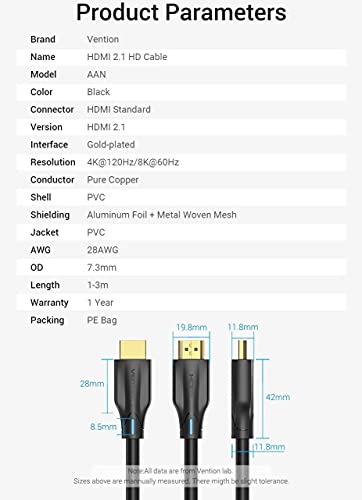 VENTION - VENTION HDMI 2.1 Cable, 8K at 60Hz, 4K at 120Hz, 3 Meters