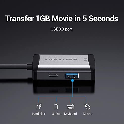 Vention - VENTION Type-C to HDMI/VGA/USB3.0/PD Converter 0.15M Gray