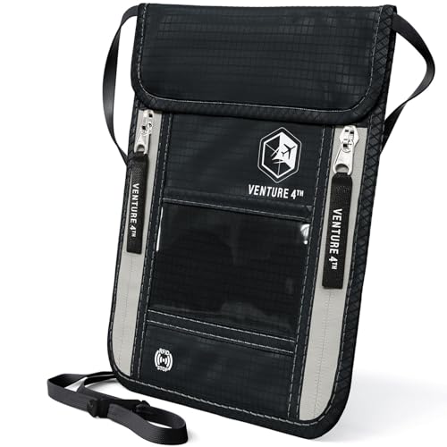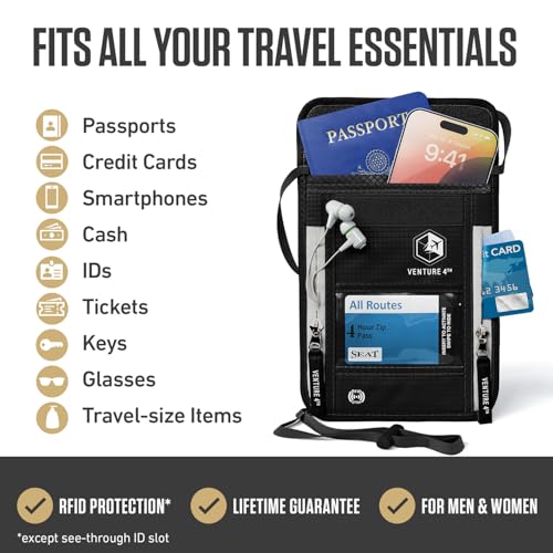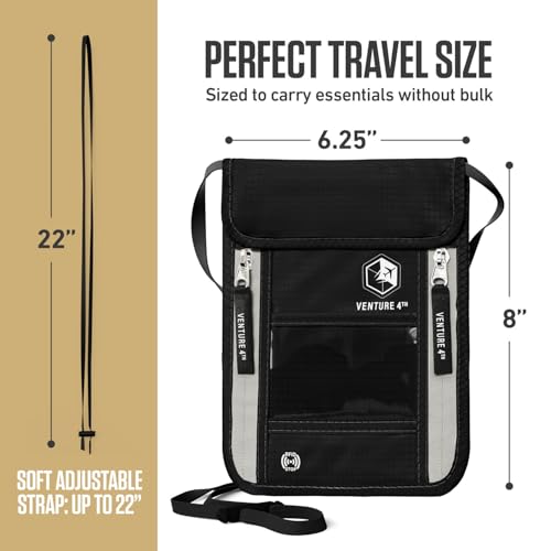VENTURE 4TH - Venture4th Passport Holder Neck Pouch with RFID Blocking The # 1 Travel Wallet (Black)