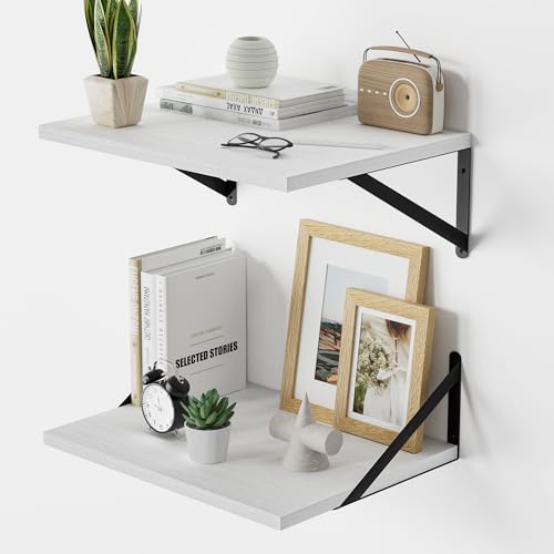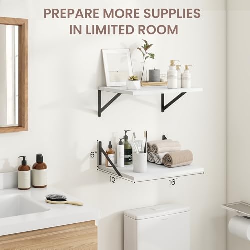 Venusmiles - Deep Floating Shelves 16W x 12D White Floating Shelves for Wall Rustic Wood Wall Shelves for Living Room Bedroom Bathroom Kitchen, Set of 2