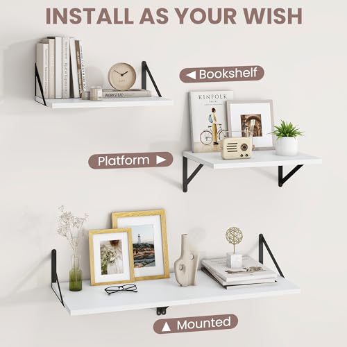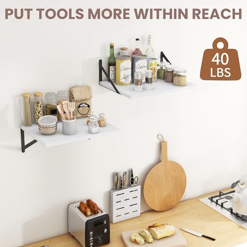 - HEAVY DUTY FLOATING SHELVES - Our deep floating shelves are made of engineered wood with a painted white finish that adds modern style. Easy to be cleaned. Heavy-duty triangular metal brackets effortlessly provide sturdy and stable support for the shelves.