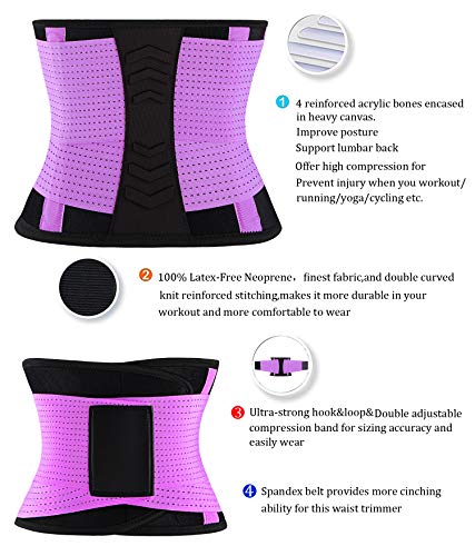 VENUZOR - VENUZOR VITOMOR Waist Trainer Belt for Women Waist Cincher Trimmer Weight Loss Body Shaper Sport Girdle Purple, Purple-2, XXL