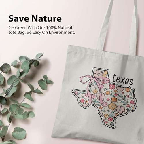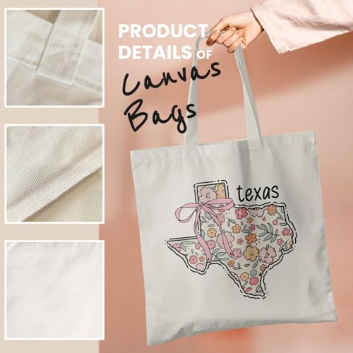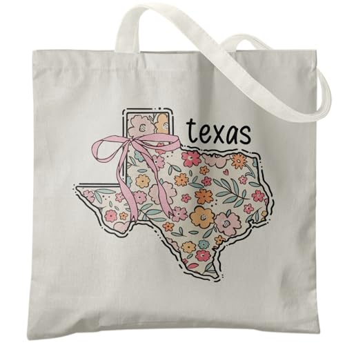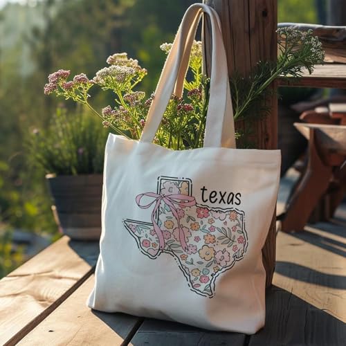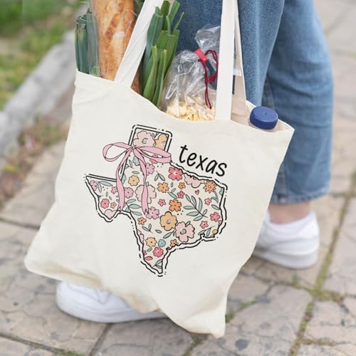 Veqzc - Coquette Patriotic Tote Bag, Floral Texas Map Canvas Tote Bags for Women, 4th of July Gifts, Patriotic Gifts, Preppy Aesthetic Reusable Grocery Shopping Bags