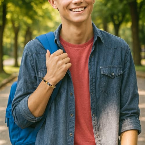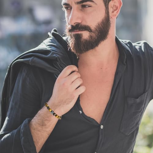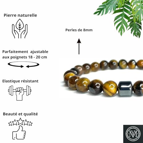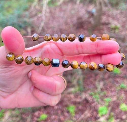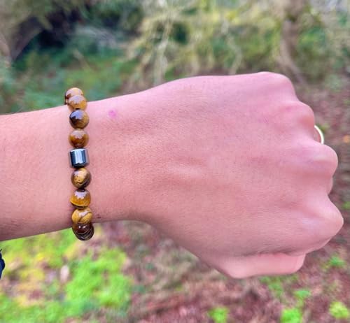 Vera Mentis - سوار من حجر عين النمر والهيماتيت الطبيعي مع خرز 8 ملم من فيرا مينتيس، مجوهرات أنيقة للجنسين، قوية وفريدة من نوعها مع حجر عين النمر