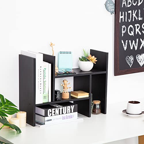 VERGOODR - VERGOODR Desktop Organizer Office Storage Rack Adjustable Natural Wood Display Book Shelf Stand Rack Wood Caddy Desk Organizer Set Office Storage Expandable Tabletop (black)
