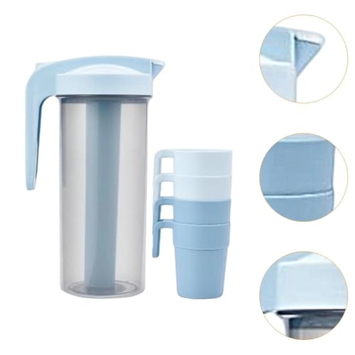 Generic - Versatile 1200ml Beverage Pitcher with Ice Rod and 4 Plastic Cups for Detox Cold or Hot Drinks Ideal for Home Use Travel Parties and Daily Refreshments