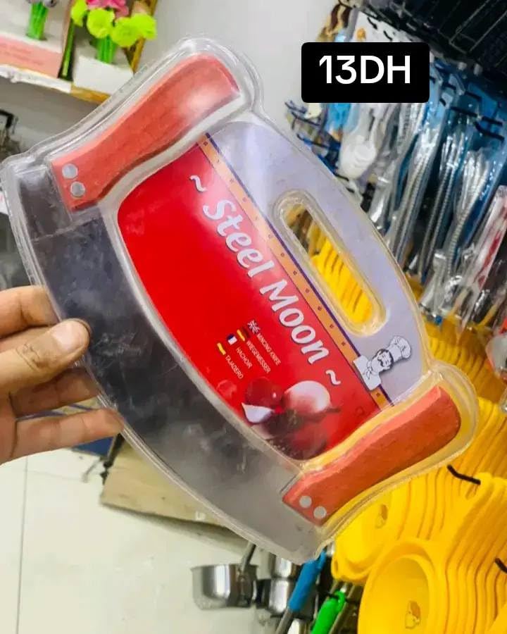 - Stainless steel double blade for precise and smooth cutting Two convenient wooden handles for better grip during use. Professional arc design facilitates frequent cutting quickly and comfortably Suitable for cutting vegetables, herbs, meat, and fruits. Safe and easy to clean after every use Long lasting high quality