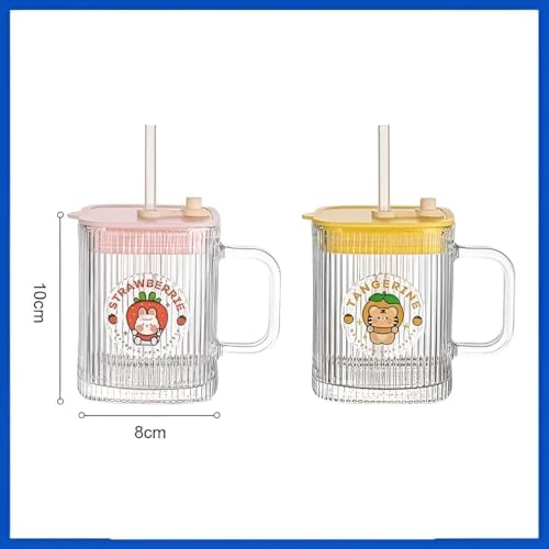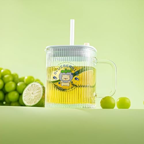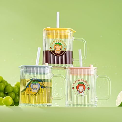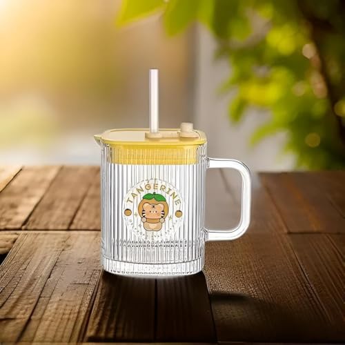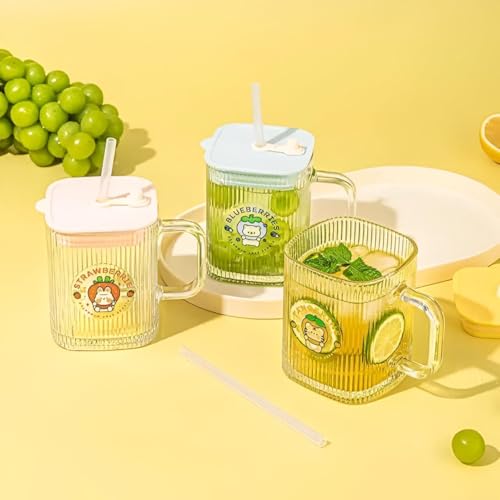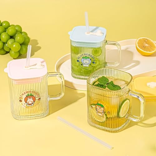 Generic - Versatile Drinkware - Eye-catching square glass mug featuring a heat-resistant design, colorful silicone straw, and acrylic lid, suitable for various beverages, 420ml capacity.