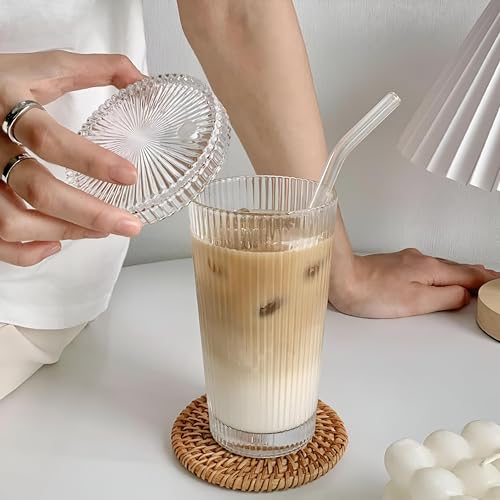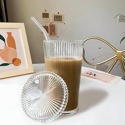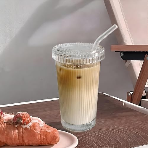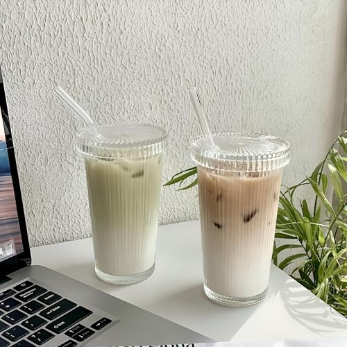Generic - VERSATILE GLASS CUP - Make every sip fun with this versatile 12.5 oz glass tumbler, with a secure lid and convenient straw, perfect for home use or on-the-go adventures.(2 Cups)