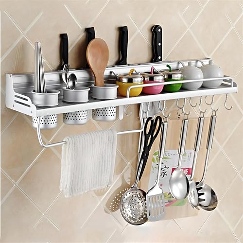 Generic - Versatile Kitchen Storage - New Aluminum Rack with Jar Holder and Spill Prevention, Features Knife Holder and Two Colorful Cups for Utensils and Cutlery