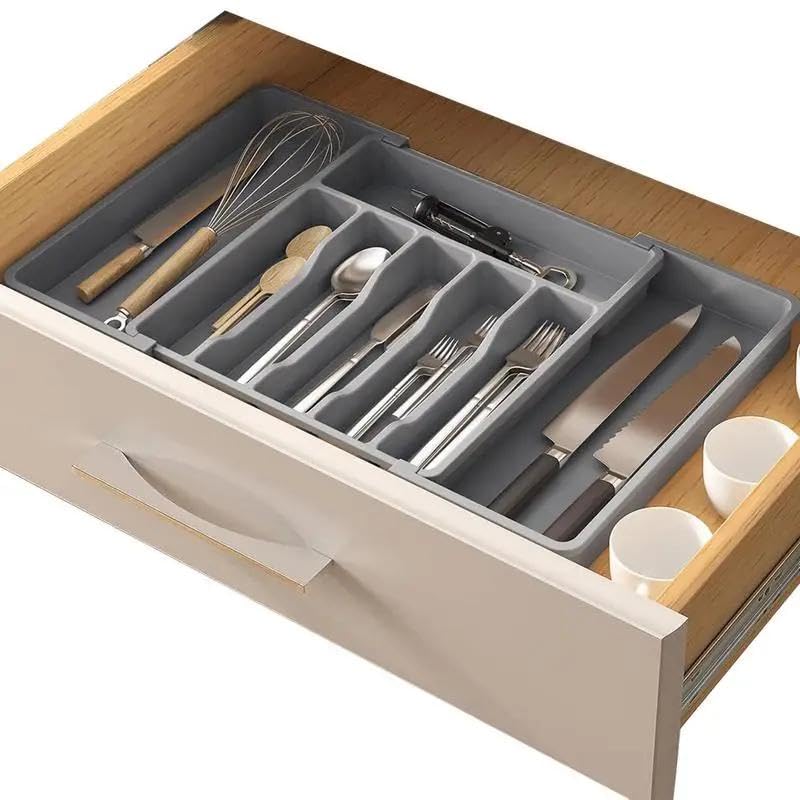 - يتميز منظم أدوات المائدة هذا بتصميم قابل للتوسيع بعرض قابل للتعديل من 33 سم إلى 22.4 انش، مما يضمن ملاءمة مثالية لأحجام الأدراج المختلفة مع توفير مساحة تخزين واسعة للأواني وأدوات المائدة وأدوات المطبخ. يمكن تعديل أبعادها بسهولة، مما يجعلها مناسبة لإعدادات المطبخ المختلفة.
