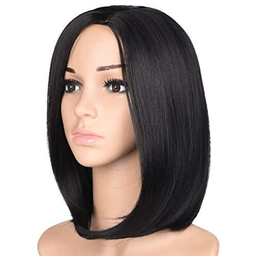 VERSCOS - Synthetic Wigs for Women | Natural Looking Long Short Wavy Straight Heat Resistant Replacement Wig Full Machine Made (14" Black Short Bob Middle)