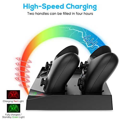 - 🎮【All-in-One Design】 Keep your console, controllers, headphone and 10 game discs organized; Charge your controllers and dissipate heat for your console; Also, includes 2pcs 1400mAh rechargeable batteries