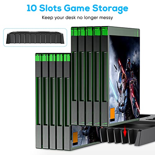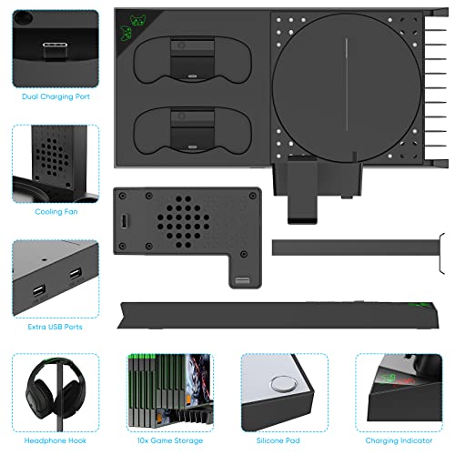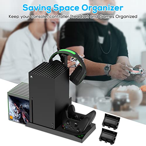 FASTSNAIL - Vertical Cooling Stand with Cooling Fan for Xbox Series X Console & Controller,Accessories with 2x1400mAh Rechargeable Batteries and Dual Controller Charger Dock Station&Headset Holder&10 Game Slots