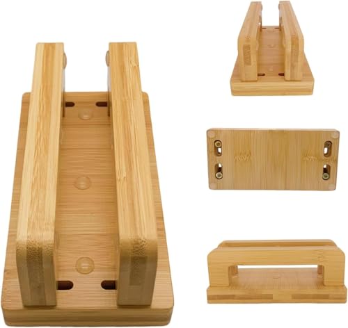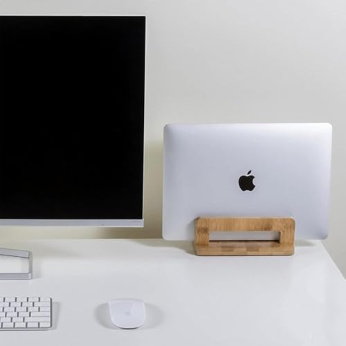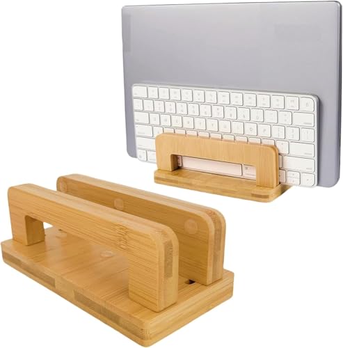 Fanxinzttc - حامل لابتوب عمودي من خشب البامبو الطبيعي بقاعدة مكتبية قابلة للتعديل ومضادة للانزلاق لأجهزة اي باد وماك بوك وأجهزة الألعاب مصمم لتنظيم أجهزتك بكل سهولة وتوفير مساحة رائعة لسطح مكتبك