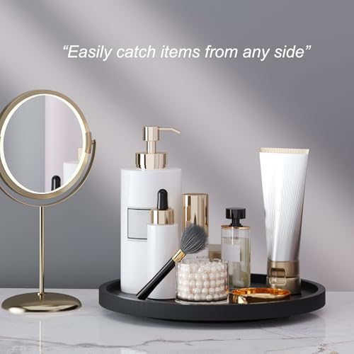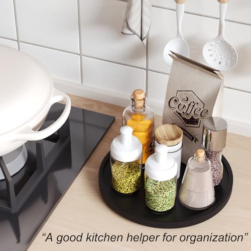 VERTORGAN - Lazy Susan Organizer for Kitchen,Bamboo Turntable for Cabinet,Pantry,Table,Countertop,Vanity,Spice Rack,Middle(Black)