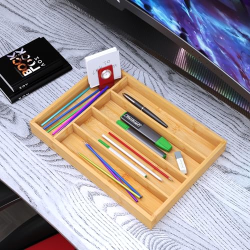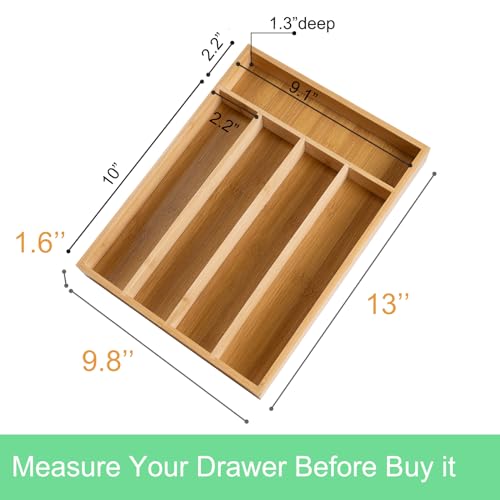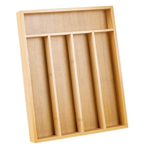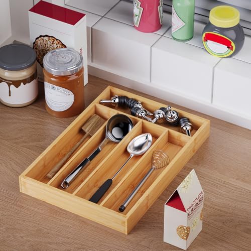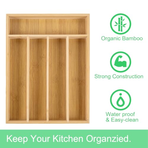 VERTORGAN - Silverware Organizer Bamboo Kitchen Drawer Organizer Kitchen Utensil Organizer with 5 Slots Flatware Organizer Tray for Kitchen, Flatware, Utensils