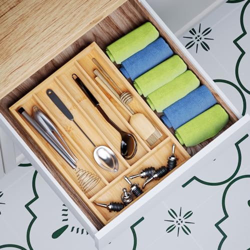 - 【 Product Care is Super Simple 】The surface of the bamboo drawer organizer is polished and painted to make the product smooth and easy to clean. Simply apply a wet cloth to the silverware tray to wipe away any stains or debris that may have accumulated. It only takes a few minutes to get a brand-new silverware organizer.
