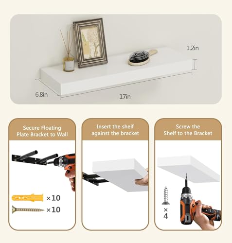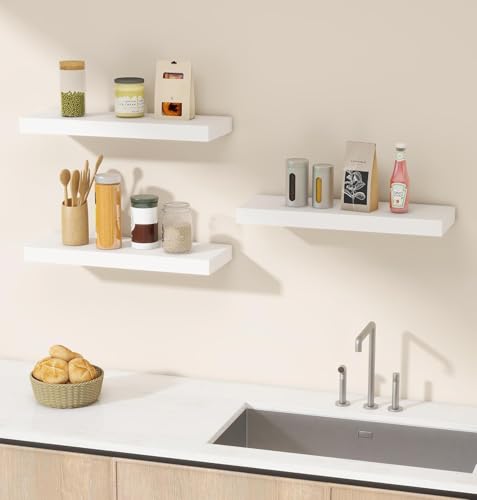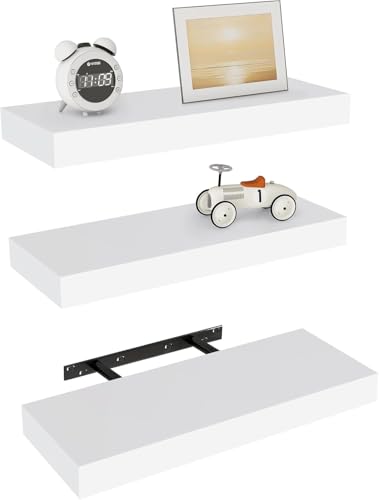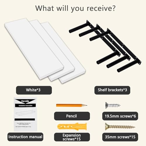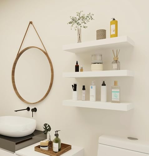 Vervida - Vervida® White Floating Shelves for Wall, 17" Wall Mounted Shelves with Invisible Brackets for Decor & Storage, Floating Shelf for Bathroom/Living Room/Bedroom/Kitchen/Above The Toilet (Set of 3)
