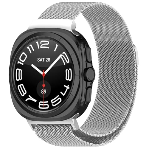 VeveXiao - VeveXiao No Gaps Milanese Magnetic straps Compatible with Samsung Galaxy Watch 7 Ultra 47mm, Milanese Loop Stainless Steel Metal Replacement Band for Men Women