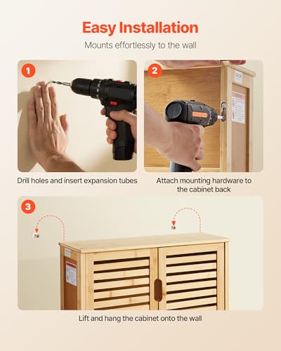 - Easy to Install: This bathroom wall storage cabinet features a wall-mounted design, coming with a full set of installation tools and detailed instructions. No professional skills or extra tools are needed—beginners can quickly finish assembly