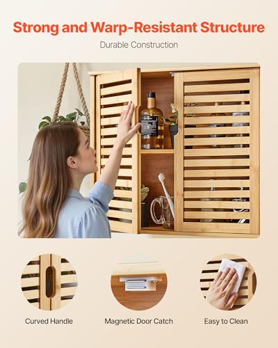 VEVOR - VEVOR Bathroom Wall Cabinet, 2 Doors and Adjustable Shelf with 3 Height Levels, Over The Toilet Storage Medicine Cabinet Wall Mounted, Hanging Organizer with Shelves for Laundry Room Kitchen Restroom