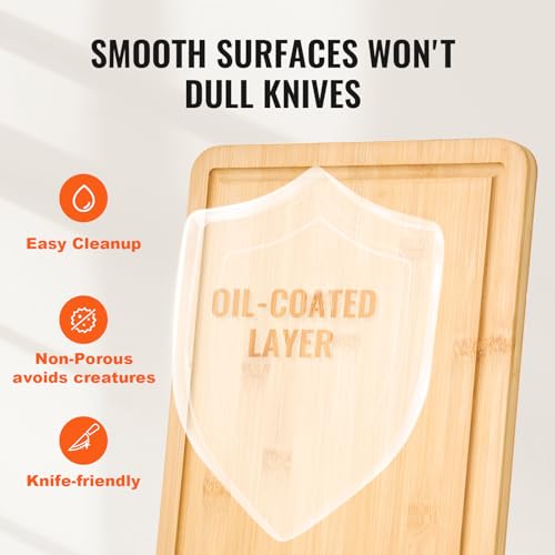 VEVOR - ألواح متعدد الاستخدامات مصنوعة من خشب البامبو عالي الجودة معالج بزيت آمن غذائيًاة وحافة تجميع العصارة، لوح تقطيع قوي ومتين مزود بمقبض مدمج، مناسب للعرض والتقطيع والتقديم من فيفور