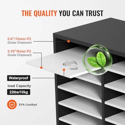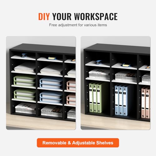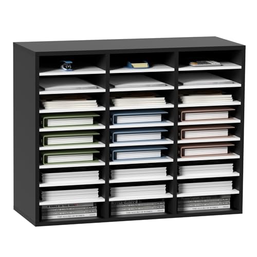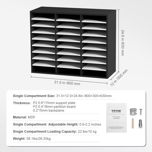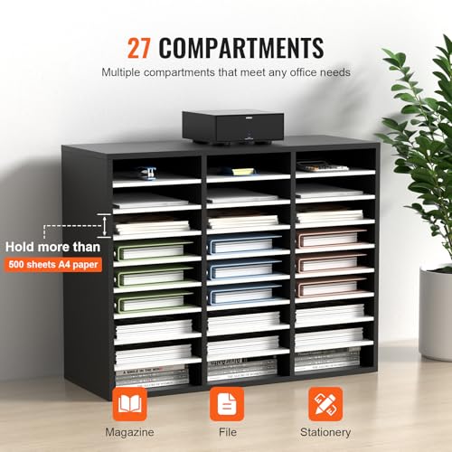 VEVOR - منظم كتب وأدبيات من الخشب مكون 27 قسم ورفوف قابلة للتعديل مصنوع من لوح ألياف متوسط الكثافة، مركز بريد للمكتب والمنزل والمدرسة لتخزين الملفات والمستندات والأوراق والمجلات من فيفور، لون أسود وأبيض