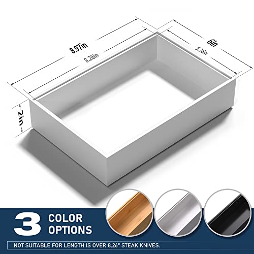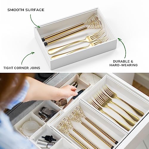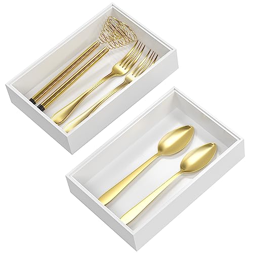 VeyFey - Drawer Organizer Kitchen Organization Bamboo Set of 2 Silverware Storage Utensil Stackable Wooden Tray Small Wood Box 9" x 6" x 2"(White)