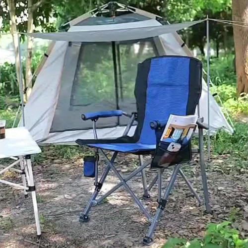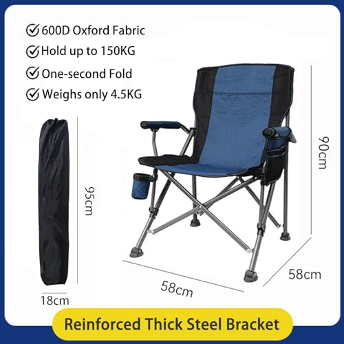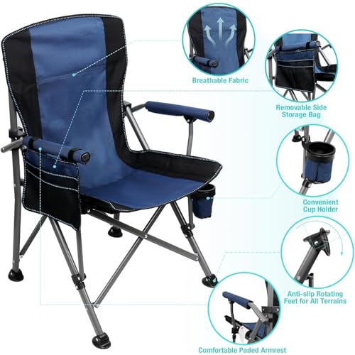 Veylenix - كرسي تخييم كبير الحجم من فيلينكس، كرسي شاطئ خارجي قابل للطي وشديد التحمل يدعم وزن 200 كجم، مع مسند ذراع صلب وحامل اكواب وجيب جانبي، أزرق وأسود