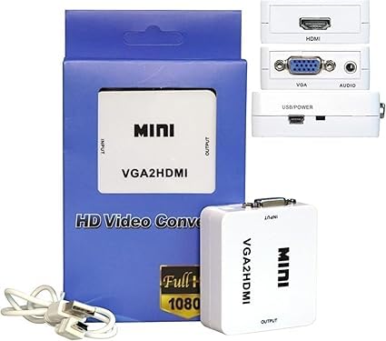 - يقوم الجهاز بتحويل إشارات VGA التناظرية إلى إشارات HDMI مفصلة، كل من الصوت والفيديو في وقت واحد، مما يسمح للأجهزة التي تحتوي على منافذ VGA فقط بالحصول على شاشة أكبر. نظرًا لأنه يعمل بكابل طاقة USB، فهو متوافق على نطاق واسع مع معظم الأجهزة من تلك التي لا تحتوي على مصدر طاقة.
