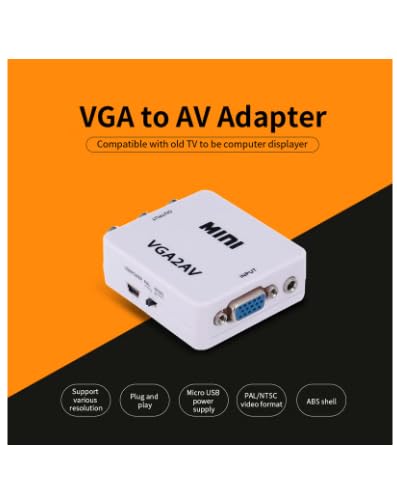 Generic - VGA to AV Adapter Mini VGA to AV Converter ABS Shell Video Converter White
