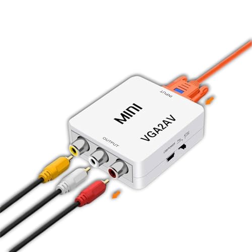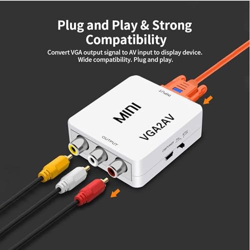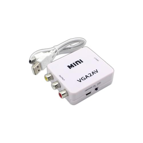 Generic - VGA to AV Converter – VGA to RCA Composite Video Adapter with Audio Support – Mini VGA2AV 1080p Converter – USB Powered, Plug & Play – White (AUX Cable Not Included) (VGA2AV)