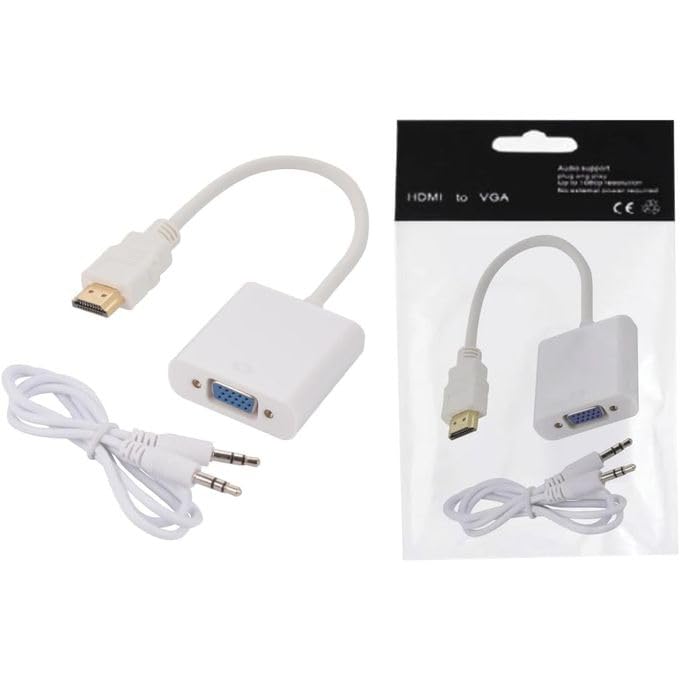 Generic - كابل VGA إلى HDMI من A plus المنتج الاصلي AB-33H فاصل صوت وصورة كابل فيجا إلى HDMI 1080P ، نقل إشارة سريع، 0.25 مترمحول للكمبيوتر واللاب توب والشاشة عالية الدقة HD، أبيض