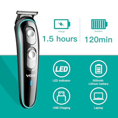VGR - VGR 055 Hair Trimmer for Men, Electric Beard Trimmer for Men Pro Zero Gapped T Blade Liners Hair Clippers for Barber, Cordless Edgers Clipper/Trimmer Rechargeable