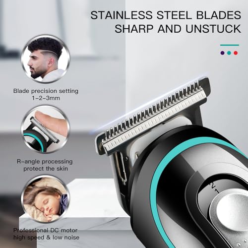 - PRECISION T-BLADE HAIR TRIMMER: This hair trimmer's precision T-blades ensure professional-level accuracy and sharpness, R-angle design of the blade edge improves safety and comfort and reduces the risk of scratches and irritation. The blades offer three adjustable length settings perfect for cutting hair, trimming body hair, close trimming, refreshing liners, beards, sideburns and more, making it the perfect gift for men!