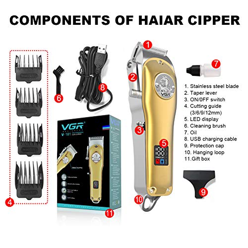VGR - VGR 181 hair trimmer USB rechargeable hair clipper LCD haircut machine oil head clipper white hair carving 10W powerful clipper