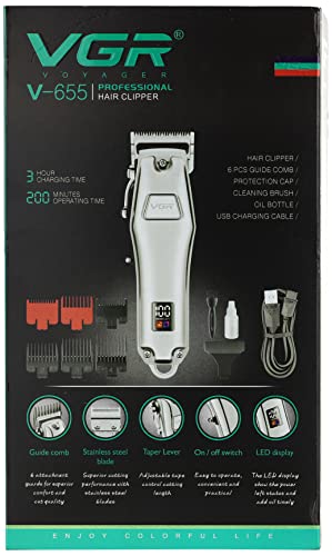 VGR - ماكينة حلاقة شعر احترافية 655 قابلة لاعادة الشحن والغسل للعناية الشخصية كهربائية مع USB وشاشة LED من في جي ار V655 لتقليل الذهاب الي الحلاق