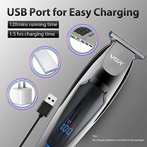 VGR - ماكينة حلاقة الشعر VGR للرجال مطورة لاسلكيًا ومُحسّنة ومُحترفة لتشذيب وتشذيب اللحية بشفرة T ذات الشفرة القريبة وتصفيف وشاشة LED قابلة لإعادة الشحن