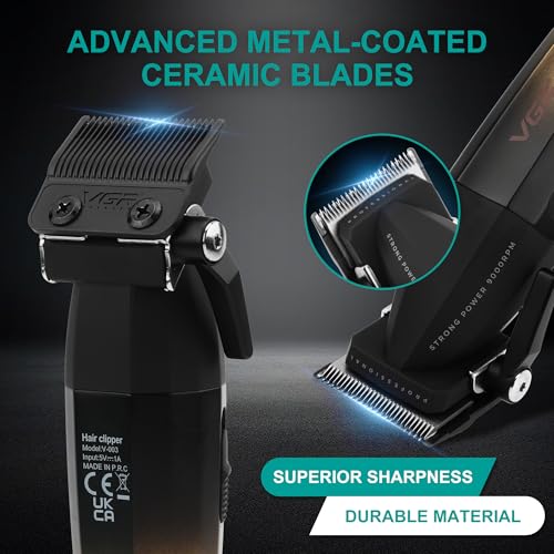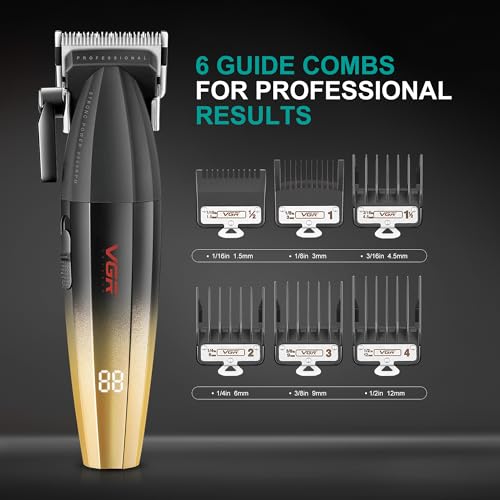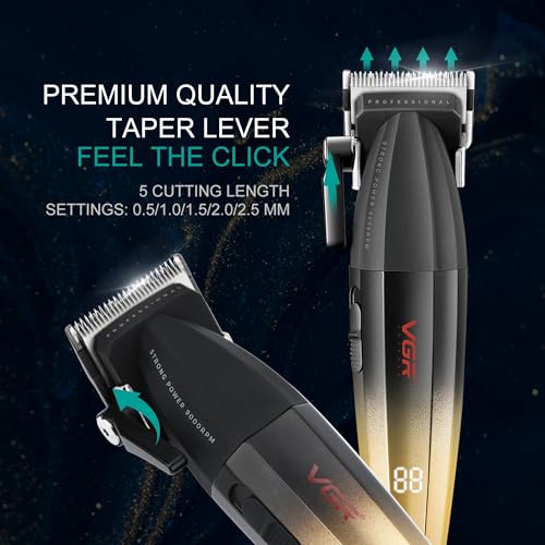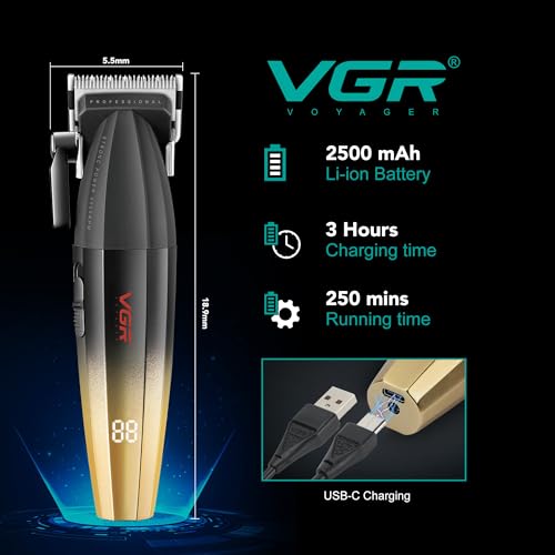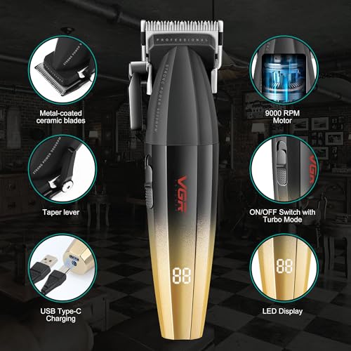 VGR - في جي ار ماكينة حلاقة شعر احترافية لاسلكية للرجال - 9000 دورة الدقيقة - لقص الرأس - اللحية الطويلة - رافعة مدببة - كهربائية قابلة لاعادة الشحن عبر USB نوع سي