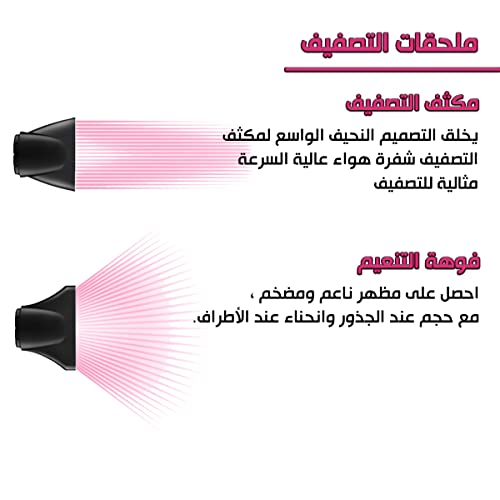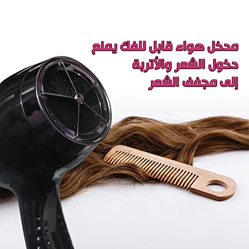 - حماية من التسرب والحرارة الزائدة: مجفف الشعر هذا مجهز بمقبس أمان، والذي يمكن أن يضمن سلامتك أنت وعائلتك في حالة حدوث ماس كهربائي ناتج عن التسرب. يمكنك استخدامه بسهولة مع عائلتك والاستمتاع بالتجربة المثالية التي يوفرها مجفف الشعر مع الموزع. [نصيحة: الجهد الكهربائي المناسب 220 فولت - 240 فولت]