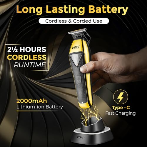 VGR - في جي ار ماكينة حلاقة احترافية V-994 للرجال | شفرات دي ال سي وبطارية قوية 2000mAh | وقت تشغيل 150 دقيقة ومحرك عالي السرعة 10000 دورة في الدقيقة | شحن لاسلكي وUSB-C | لاسلكية وسلكية | مثالية للحلاقة