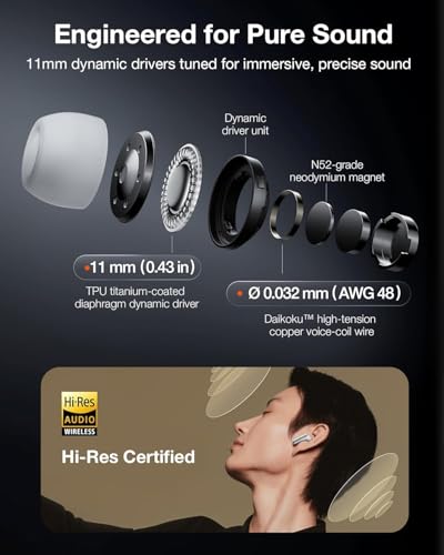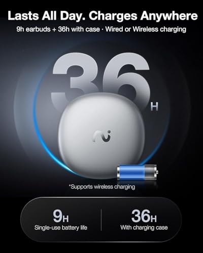 - صوت عالي الدقة - صوت عالي الدقة و48dB، تقنية ايه ان سي: استمتع بالاستماع الغامر بفضل الصوت المضبوط باحترافية والسماعات القوية، وتقنية عزل الضوضاء النشط الهجينة بقوة 48dB. سماعات الأذن اللاسلكية بتقنية الذكاء الاصطناعي هذه مثالية للمسافرين والعاملين عن بعد لتحقيق التوازن بين التركيز والترفيه في البيئات الصاخبة.