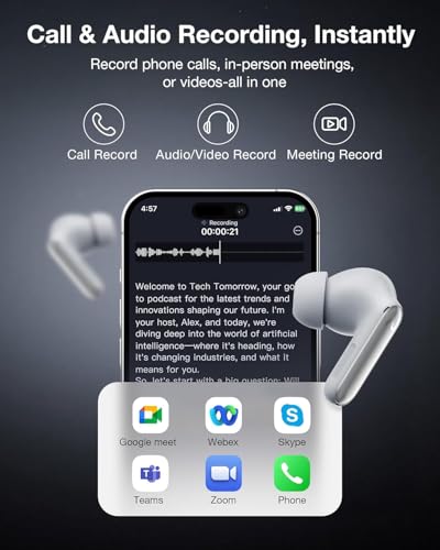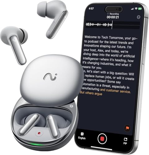 VIAIM - سماعات أذن ريك دوت ايه اي، أداة مساعدة اجتماعات بالذكاء الاصطناعي مع نسخ وترجمة فورية لـ 16 لغة وخاصية التسجيل السريع وعزل ضوضاء نشط بتقنية ايه ان سي بقوة 48dB وقوائم مهام وملخصات من فيايم، فضي