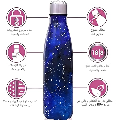 Generic - قوارير خفيفة الوزن، جدار مزدوج، مصنوعة من الفولاذ المقاوم للصدأ، عازلة وخالية من البيسفينول أ، تحافظ على المشروبات ساخنة أو باردة حتى 8 ساعات، رائعة للأنشطة، سعة 500 مل (لون B)