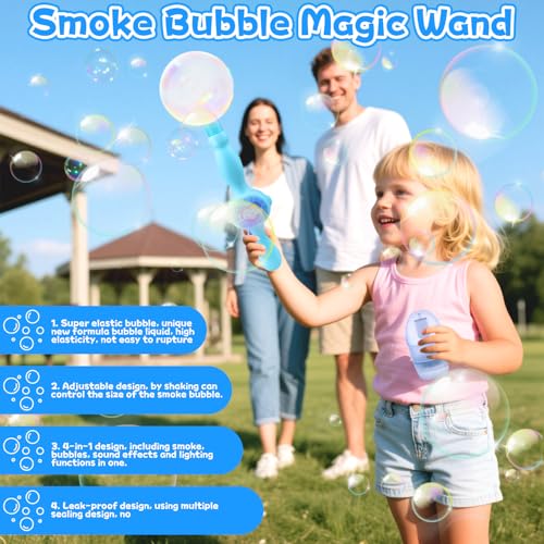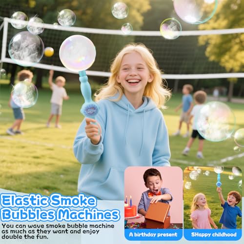 - 【Colorful Smoke Bubble Machine】Come and try this kids unlimited smoke bubble machine with elastic magic wand. These lightweight design magic bubbles create fascinating colorful smoke bubbles with dreamy light effects; perfect for party fun indoors or outdoors.