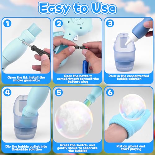 - 【Smoke Bubble Machine】With a simple and gentle wave, the smoke bubbles will fly away instantly, as if they entered a fairytale world. You can shake the smoke bubble machine as much as they want and double the fun. They will fall in love with this magical experience and let joy fill every corner.